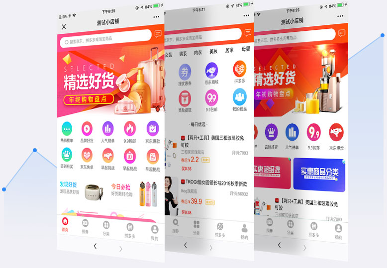 支持淘宝天猫、京东、拼多多、唯品会等商城电商导购,无缝对接第三方电商CPS联盟平台